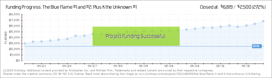 Hi everyone, We are closing in on 5K and that is where we will be hitting out first stretch goal. At 5K everyone who backed for a physical copy or art reward will receive two trading cards; one Blue Flame and one K the Unknown. I am working on them... (Read More)
