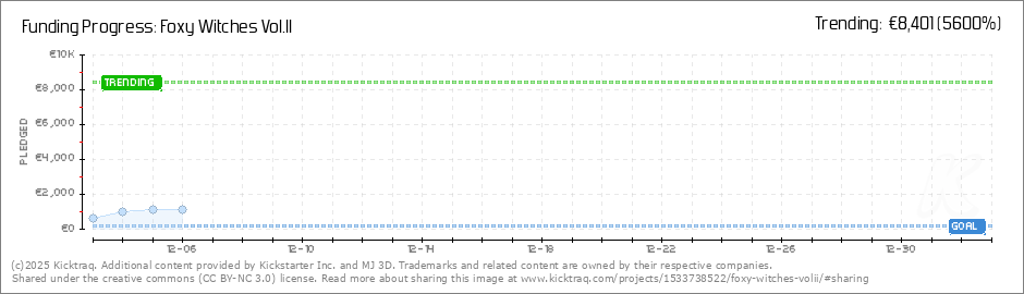 Help your backers reach your daily goals and help others see how you're doing. It's easy, with Kicktraq Mini.Here are a few quick snippits of code you can use to embed your personalized widget on your website, in your blog, and even on your favorite forum.