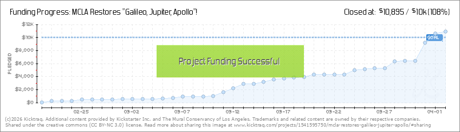 The Mural Conservancy of Los Angeles (MCLA) is restoring a 1984 Olympic Freeway Mural, "Galileo, Jupiter, Apollo", by John Wehrle.