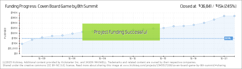 My projection for this game was between 35-50k. Looks like we will reach 35k fairly easily but it would be great if we had a giant push to 50k. The Tarot cards are very nice. I have a template already designed. Get the word out by liking... (Read More)