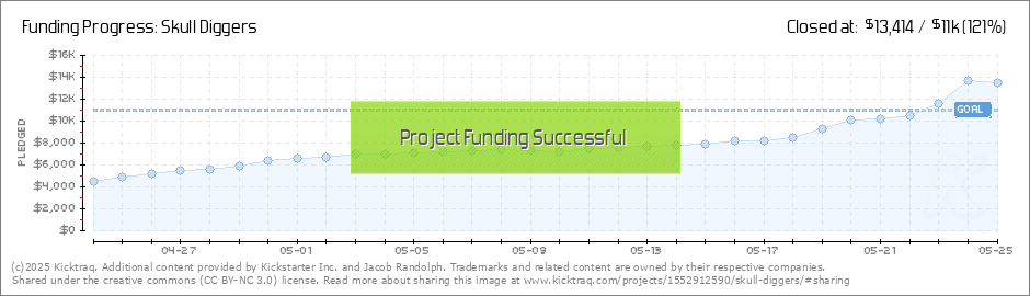 Hey folks! We're 65% funded with 18 days left to go! We are well on track to hit funding, and that's wonderful news. I just finished the Setting Guide alpha draft and posted it in a backer's only update. Now you can play Skull Diggers yourself! The... (Read More)