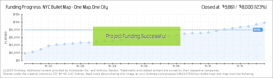 Hi all, Thanks so much for your support of Bullet Map! It’s day 3 and we’re already at 35% of our $8,000 goal. We’re excited to meet that goal and go beyond… all the way to becoming the official map of the MTA?! We've got exciting news coming... (Read More)