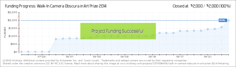 Hi Everyone! Thank you so much for standing behind us and sacrificing your finances to build the Walk-In Camera Obscura. We are meeting with our architect this Sunday evening to draw out specific plans. We will start buying wood in the next coming... (Read More)