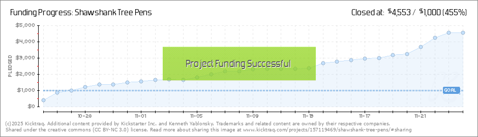 This is AWESOME! Only two and a half days and we've reached our goal. I'm super excited to make sure that those that want Shawshank, get it. Let's keep this going and keep sharing the campaign/ Go team Shawshank! (Read More)