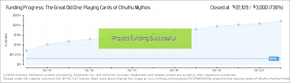 Dear backers, Thanks so much for your support! The project will end in less than 24 hours. All playing cards and add-ons are ready for shipping. The Great Old One: You'll need an HTML5 capable browser to see this content. Play Replay with sound Play... (Read More)