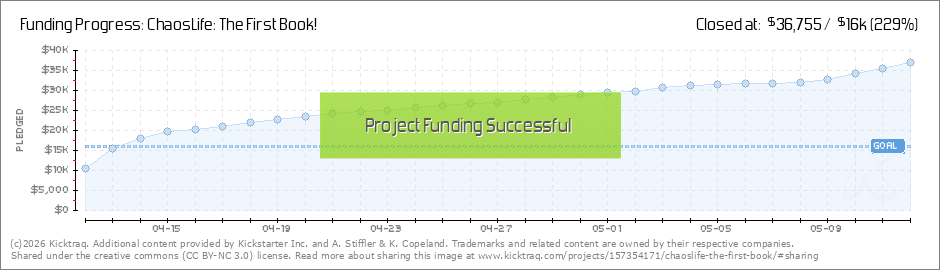 AAAAAND FUNDED! IN ONLY 38 HOURS, CHAOSLIFE: THE BOOK WENT FROM ZERO TO 16K!!!Thank you all so, so, so much. We honestly never expected this much support, and we’re beyond ourselves with gratitude and excitement. We’re just cycling between... (Read More)