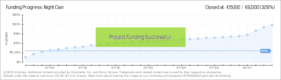 You are all awesome! Thanks to your support Night Clan got funded in about 72 hours. We are so happy to see our first board game reach so many people, and all your enthusiasm and feedback were essential! We are really thankful, and we want to make... (Read More)