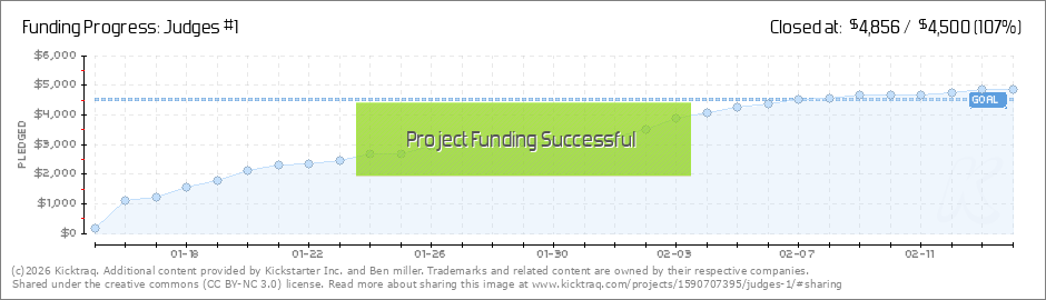 Wow with 6 days left the Judges kickstarter has reached its goal. Thanks to all my family, friends, fans, and complete strangers that helped me get there. We raised $4500 in just 24 days. The support of people has been overwhelming and humbling. I... (Read More)