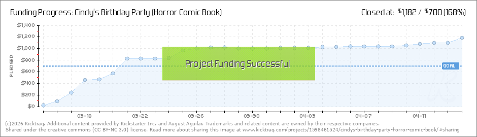 This is an amazing surprise, we got fully funded for the project! It looks like "Cindy's Birthday Party" is going to get the full comic book treatment and it's all because of you! Thank you to everyone who pledged, big or small, every dollar counts... (Read More)