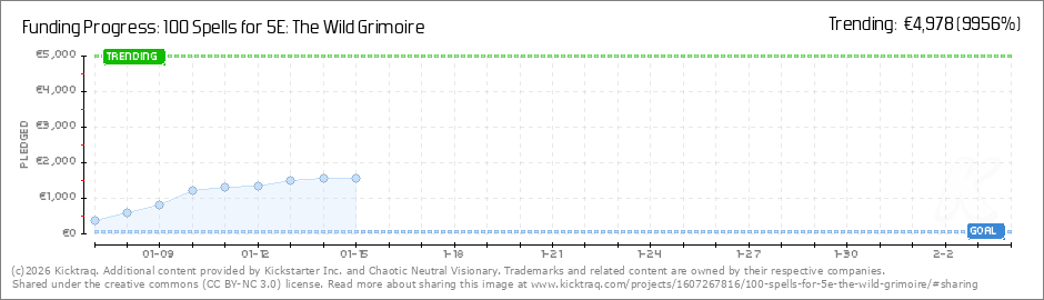 Wow. Really.Reaching more than €500 in the first 24 hours is an incredible way to start 100 Spells for 5E: The Wild Grimoire, and that’s entirely thanks to you. Every single pledge matters. Whether you joined in the first minutes or discovered... (Read More)