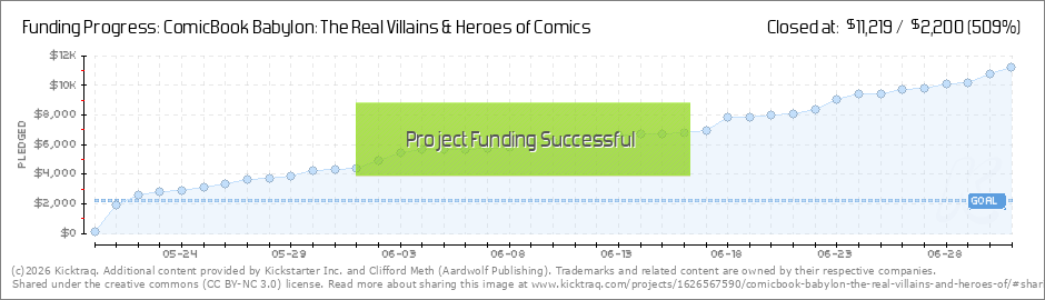 As of today we have 174 backers. After we are funded, you folks will be the first ones offered the DAVE COCKRUM alternate-cover version of ComicBook Babylon, which will be signed and numbered and limited to a print run of no more than 250 copies. ... (Read More)