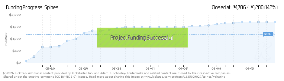 Just wanted to let everyone know that I am including the MP3 of the track "Spine" with all pledges now, not just the $3+ tier. I am unable to edit the rewards for the book packages, but have no fear, you will all get a link for the download in the... (Read More)