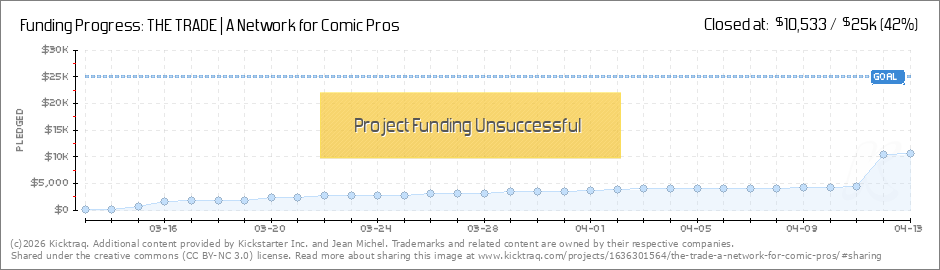 Thank you all so much for pledging! We are that much closer to a site with boundless potential for it's benefits to the comic industry, but to make the rest of our goal, we really need you to share the project with all the comic book pros, businesses... (Read More)