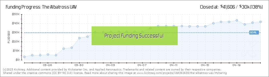 Hey Guys - Another great day at Applied Aeronautics. Thank you again for your support. Check us out on Dronelife.com: http://dronelife.com/2015/03/25/crowd-funded-albatross-drone-offers-fixed-wing-flexibility/ A big thank you to Jason Reagan and... (Read More)