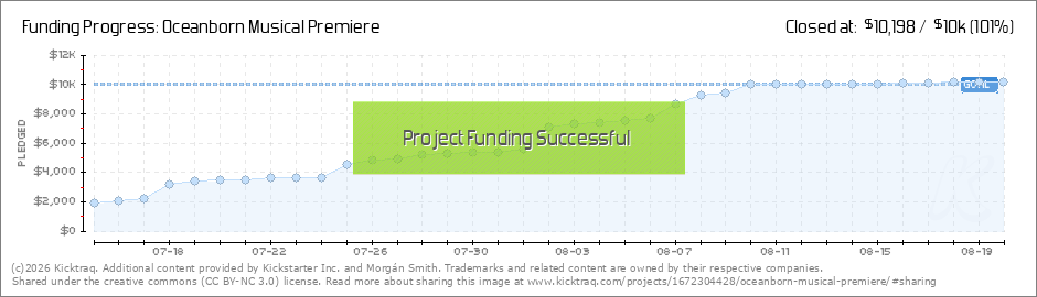 YOU have made Oceanborn possible! Two teenage girls with dreams bigger than the horizon have taken their first steps towards world (or at least Broadway) domination! You have made this possible by supporting young women in the arts, underrepresented... (Read More)