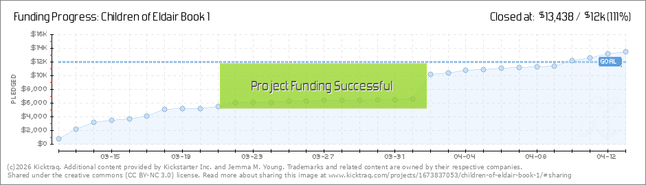 Hi everyone! It has been an incredible weekend here in Anaheim. I've been running around Wondercon meeting all sorts of great readers and comic creators who have shown lots of interest in Eldair. And now we have breached 10k-- 80% of our finding... (Read More)