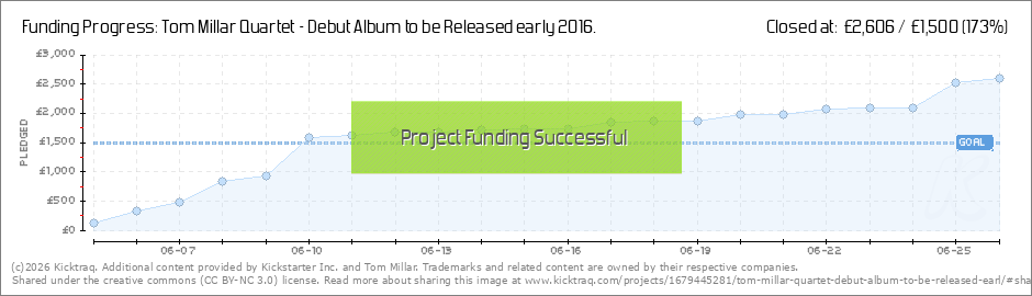 Thank you to all the backers so far, we're 61% of the way to the target so it's looking encouraging. Today I had a mention in the London Jazz email newsletter so I am hoping that that will encourage some traffic towards this page. Thanks also for the... (Read More)