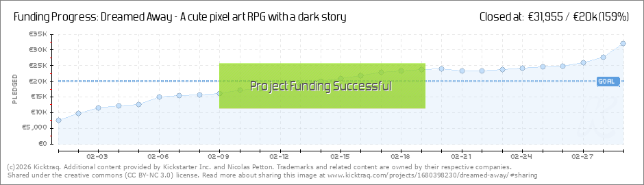 Hey, Nico here, and I'm stoked to say that we have reached 25% of our funding goal in less than 3 hours! I can't thank you enough for backing Dreamed Away!♥♥♥ Let’s keep going, and don’t forget to wishlist Dreamed Away on Steam!🔥 Nico (Read More)