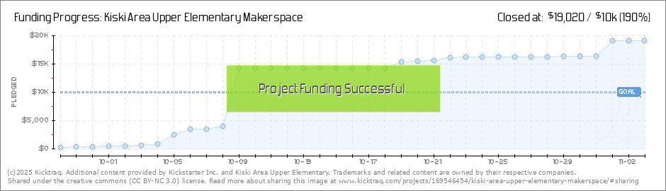Thank you to the 24 backers that have supported our Makerspace program at KAUE. Not only have we achieved our goal of $10,000, we are building momentum to go after our "stretch" goal of $18,000 to complete the space in its entirety during year one!... (Read More)