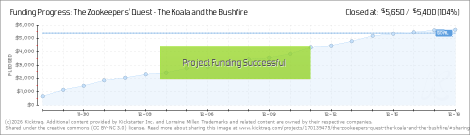 Thanks so much for your support we have reached our weekly target a day early! To celebrate reaching 75% funded we have made a book trailer for The Zookeepers' Quest - The Koala and the Bushfire. Check it out!...... All the best, Lainy & Jess xx... (Read More)