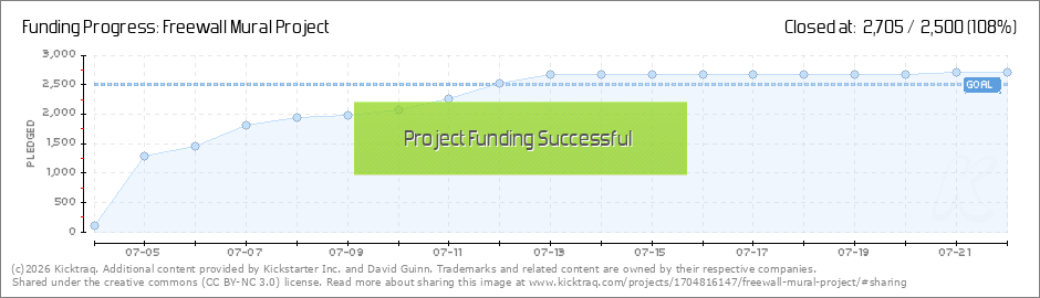 Hey everybody, I wanted to let you know a couple pieces of good news regarding Freewall. Freewall had made it to the second round of the Knight Arts Challenge. The Knight Arts Challenge is a grant program that we're hoping will fund a second Freewall... (Read More)