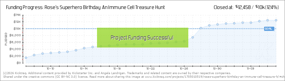Hi everyone! Today we hit a landmark, reaching 33% of our project's funding goal! Violet is very excited that so many people are also excited to share the joy of our immune cell superheroes! (So many exclamation marks in this update!) This week, I... (Read More)