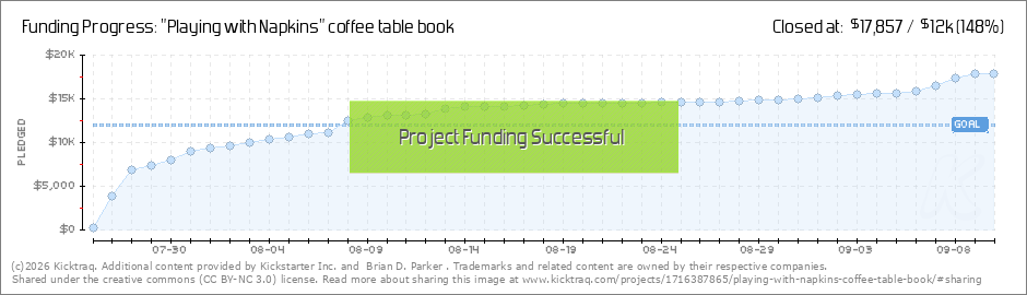 Hi Everybody! A huge "thank-you" to you for your support! We are over 1/3 funded and "Playing with Napkins" is a Kickstarter Staff Pick! Congratulations! When you are holding your reward items in your hand I hope you'll say to yourself "I made this... (Read More)