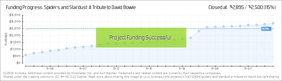 Just had a great contribution from Marcus Wells from the "Bowie Art and Artists" Facebook group to put us well over the $1,800 mark! So a big THANK YOU to Marcus for his help! (Read More)