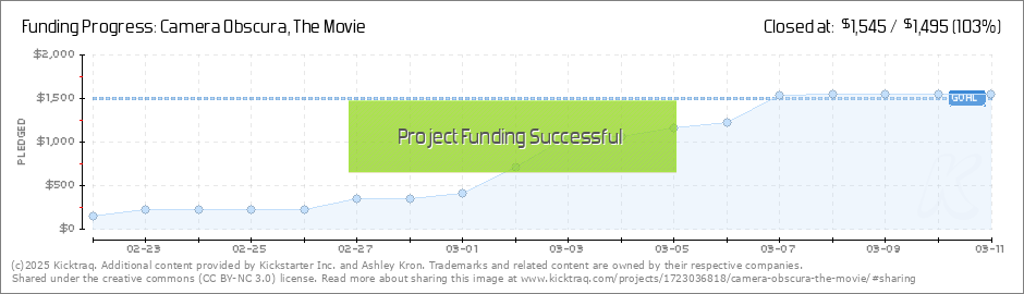 Help your backers reach your daily goals and help others see how you're doing. It's easy, with Kicktraq Mini.Here are a few quick snippits of code you can use to embed your personalized widget on your website, in your blog, and even on your favorite forum.