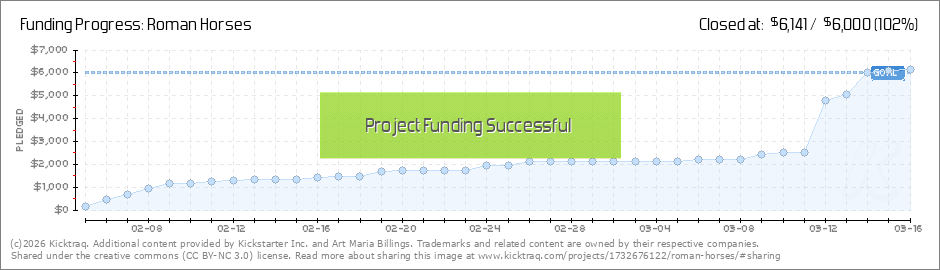 Thank you for backing this wonderful project and expressing your support in emails, talks, and all. We hit hour goal and there are still a few hours to support Roman Horses, Cavalli Romani. WHY DO IT NOW? Because this is the ONLY way to obtain... (Read More)