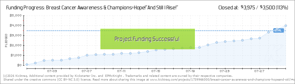 Backers Update. 26 Hours to go for my Breast Cancer Awareness And Still I Rise Campaign and the donations are yet coming in. Thank you! With the additional monies we are going to filtered these funds toward our Traveling Angel Gift Baskets for Breast... (Read More)