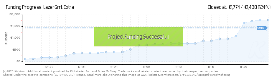 We added two new reward items.. 1. Digital copy of the soundtrack 2. 'Backer' Badge on your LazerGrrl account that will be visible to other players. Everyone who backed by more then €5 will get these. Also we've added a few new reward tiers. there... (Read More)