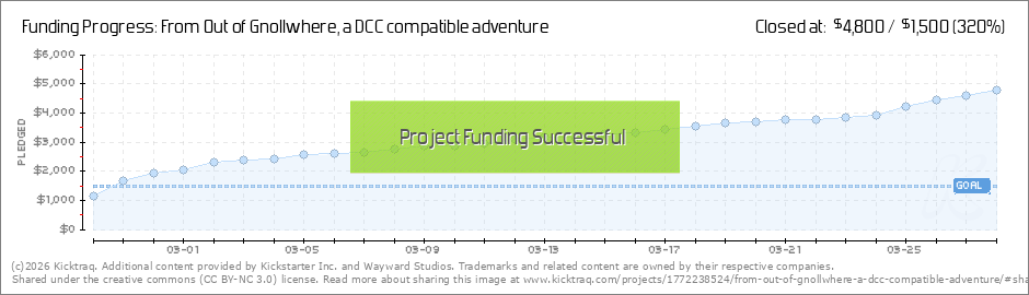 Holy CaGNOLLi, people--with a whole 'nother day left, you've TRIPLED our funding goal! This, and here we numbskulls were, worried we'd even hit our original goal and be able to put From Out of Gnollwhere into print in the first place! Thank you, as... (Read More)