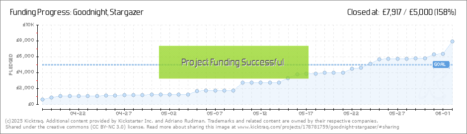 Help your backers reach your daily goals and help others see how you're doing. It's easy, with Kicktraq Mini.Here are a few quick snippits of code you can use to embed your personalized widget on your website, in your blog, and even on your favorite forum.