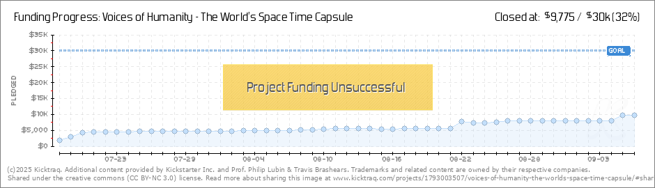 Hey Everyone! Thanks so much for taking part in joining the world's space time capsule! We are very excited to be making a second wave of media and partnerships this coming week! We are happy to say The Planetary Society will be giving us a shoutout... (Read More)