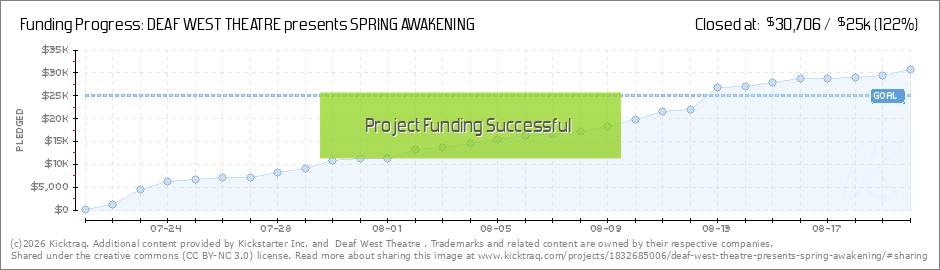 Today, we met our initial goal of $25,000! Thank you so much for the outpouring of support, which will make this amazing version of Spring Awakening possible! Pledges came in from all corners of the world, and we’re deeply grateful. But the good... (Read More)