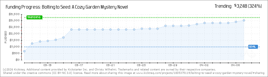 Thank you so much for joining the Kickstarter for Bolting to Seed, my new cozy mystery novel. Big news: the campaign will kick off on March 10th, 2026! Just in time for spring. When the campaign concludes in early April, we'll start shipping as soon... (Read More)
