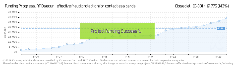 80% Funded Nearly There!! Great news we are now over 80% towards our goal, It's our last full week, and we have some exciting news to reveal later, it will be a new pledge for exclusive handmade card holders using RFIDsecur, by London based... (Read More)