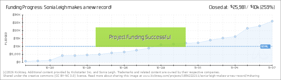 Thank you so much for all of your pledges! Peggy, thanks for helping people out with their questions and to all of you for spreading the word! I am so touched at how fast everyone jumped in to Pledge and help! I am so excited for this record!!!!!!!!... (Read More)