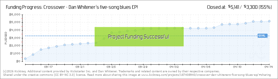 Ten days in, and we're over $3,000! Our goal is in sight, and I can't say how thankful I am for each and every one of you who has backed & shared this project. Together, you're showing support for independent music and making it possible for me... (Read More)
