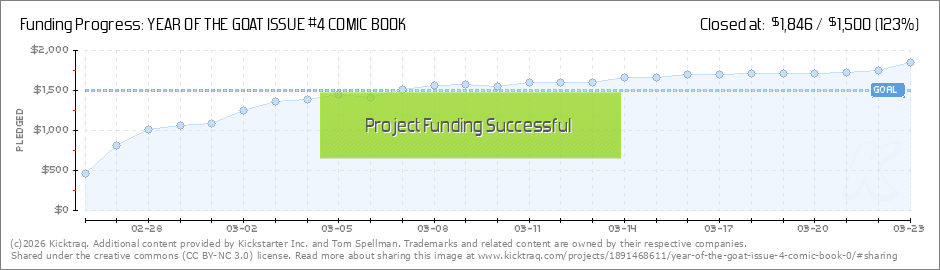 Damn Right! I'll say it again...52% Funded in the first 24 Hours!!! Full Steam Ahead for Year of the Goat!!! Thanks to all you awesome backers that lit up the board! I'll return the favor by making Year of the Goat issue #4 the most kick-ass... (Read More)