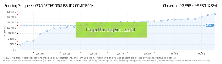 Goats and Goatettes... This is the official announcement of our first stretch goal! If our campaign reaches the $2,500 funding level, every backer who pledges $25 or more will recieve an additional print copy of Year of the Goat Issue #7 with the... (Read More)