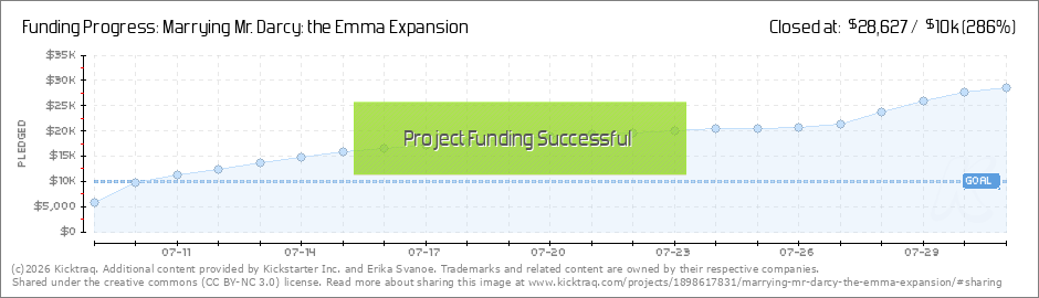Hey everyone! Things slowed down a bit the last few days, but we've just reached our $20,000 stretch goal! This means that we will create a new expansion based on another Jane Austen novel in 2016. We're not sure which novel we will adapt at this... (Read More)