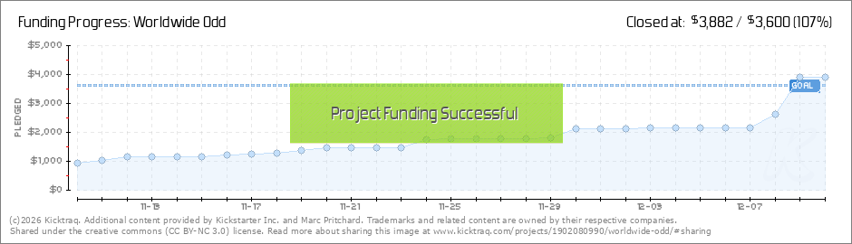 Dear backers, We did it! In a final surge in the last day of our project, we all pulled through and made our goal - and then some! We couldn't be happier, and we couldn't be more thankful for your support. Worldwide Odd is our project - and by our I... (Read More)