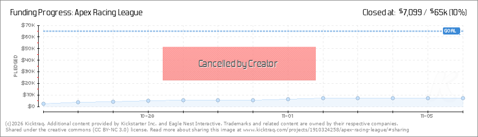 Hello Everyone, Today marks the 12th day of our Kickstarter campaign, and after thorough and thoughtful evaluation, we have decided to discontinue the campaign in benefit of the project. We believe in Apex Racing League and the support we got has... (Read More)