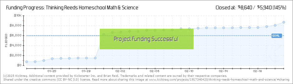 At this moment, Thinking Reeds Online has reached 120%(!) of our original funding goal with 12 days remaining in the Kickstarter campaign. I could not be more excited about what this means for homeschool science in the future. These additional... (Read More)