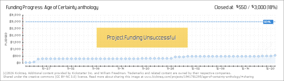 Dear supporters, It pains me to say it, but it's unlikely we'll see a bound edition of Age of Certainty. I'm not being defeatist. It would be great if some generous people were to step up over the next couple of days and stretch the $500 we've been... (Read More)