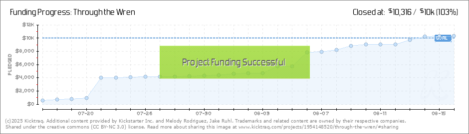 Thanks to your pledges, THROUGH THE WREN has achieved 58% of its funding! We wanted to thank you from the bottom of our hearts for all of your support thus far. Here’s to magic, love, and every bit of wonder. Let’s continue to make this take... (Read More)