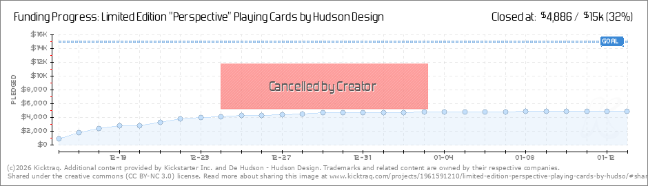 New Kickstarter Launched!Ok guys! Here we Go! https://www.kickstarter.com/projects/hudsondesign/perspective-playing-cards Thanks again so much for your support so far and even though we could not get there with all three decks I am still determined... (Read More)