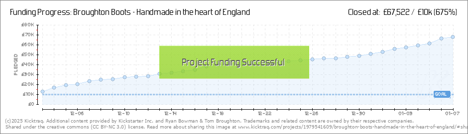 Dear Broughton Boots backers, Thank you all for your pledges.Your response has been remarkable, and we’re very grateful. As you know, this project is as much about keeping a five generation tradition alive as it is about creating a perfect boot.... (Read More)